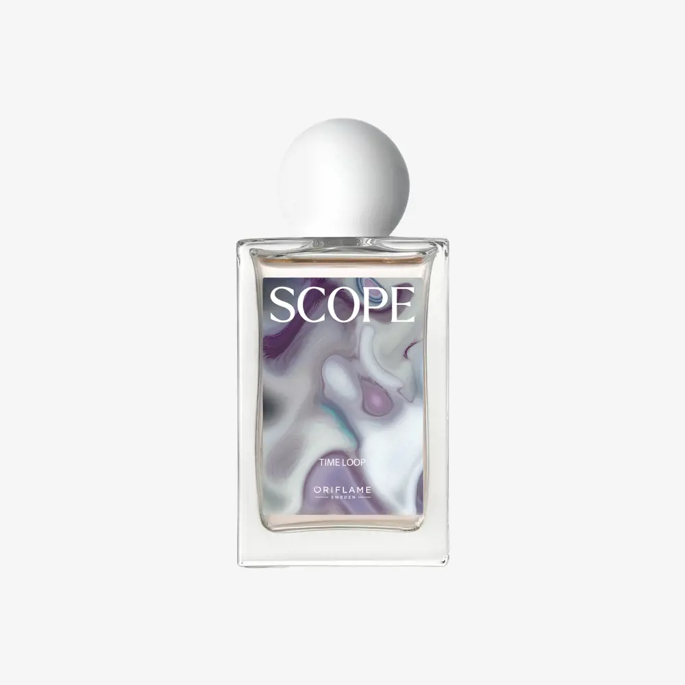 Scope Time Loop Eau de Toilette takes you on a sensory journey through time, capturing moments of happiness and serenity.